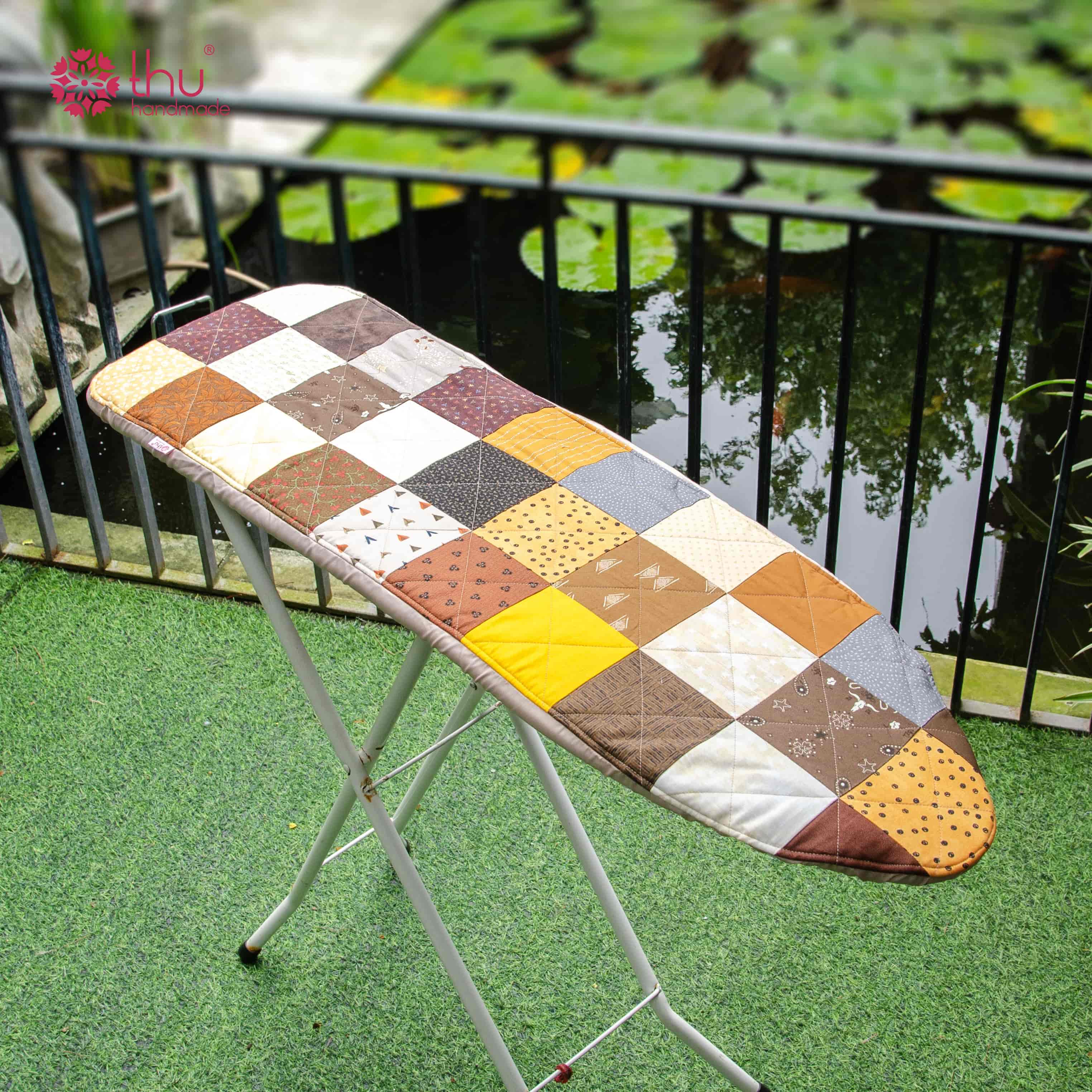 - Sản phẩm bọc cầu là quilting của Thu Handmade được ghép ô vuông thủ công bằng vải thô 100% cotton chống chịu nhiệt, chống co nhăn.