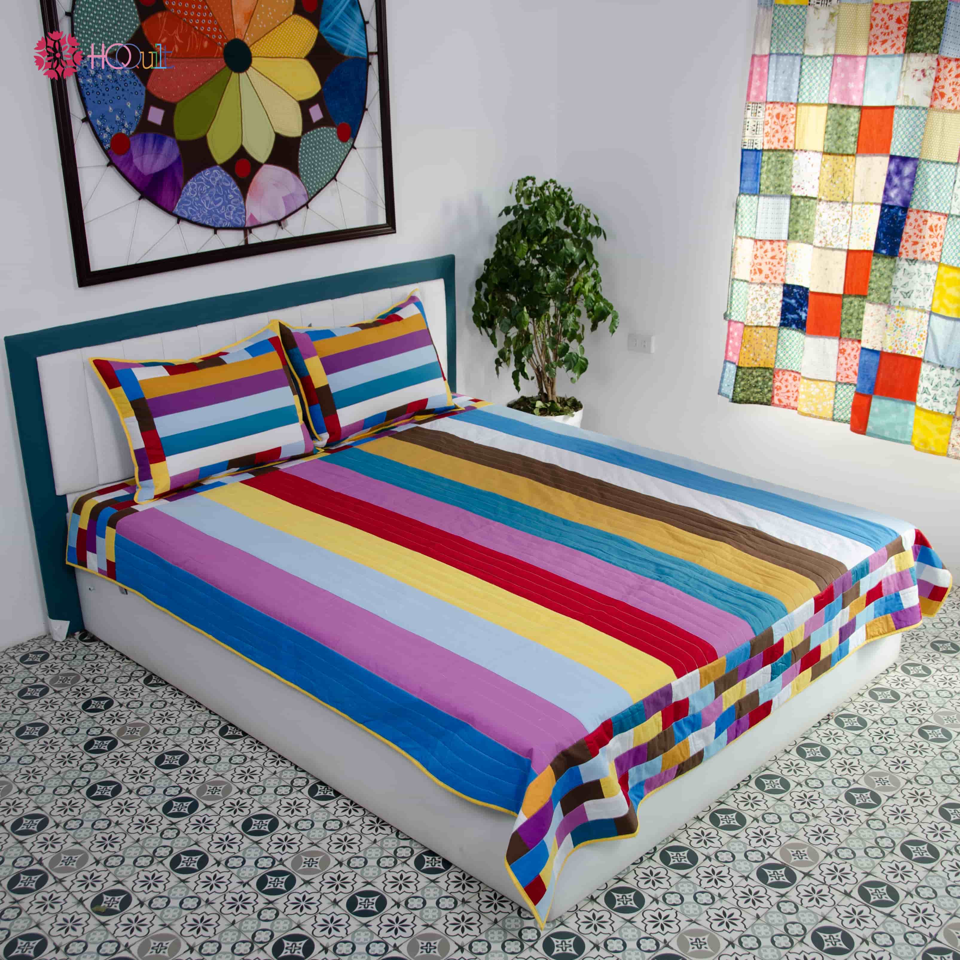 Tulips are famous for their brilliant beauty with many different colors, from red, yellow, orange to pink, purple, white, ... Each color has its own meaning, but in general, tulips symbolize brightness, optimism and joy. When owning a strip quilt named "Tulip Field", you are bringing a whole field of brilliant flowers into your bedroom, helping to decorate the space more vividly and full of life.