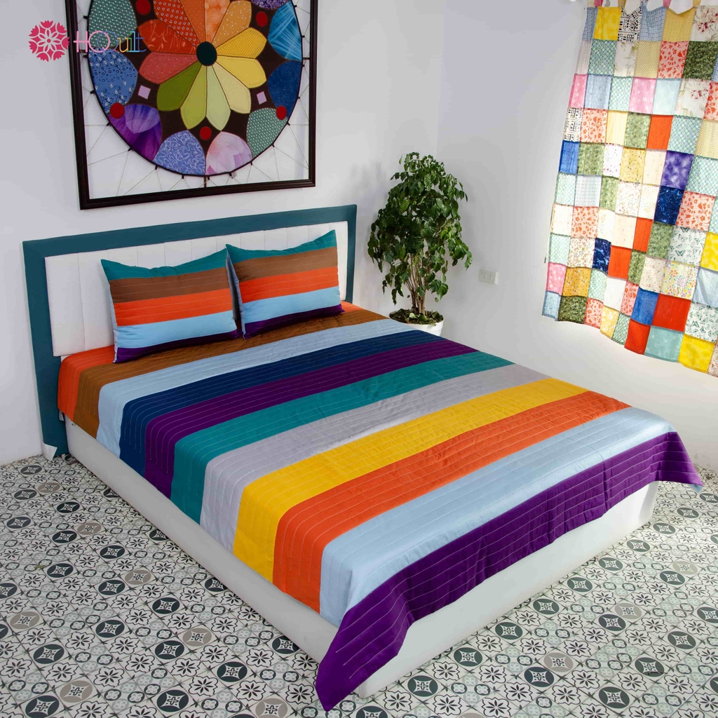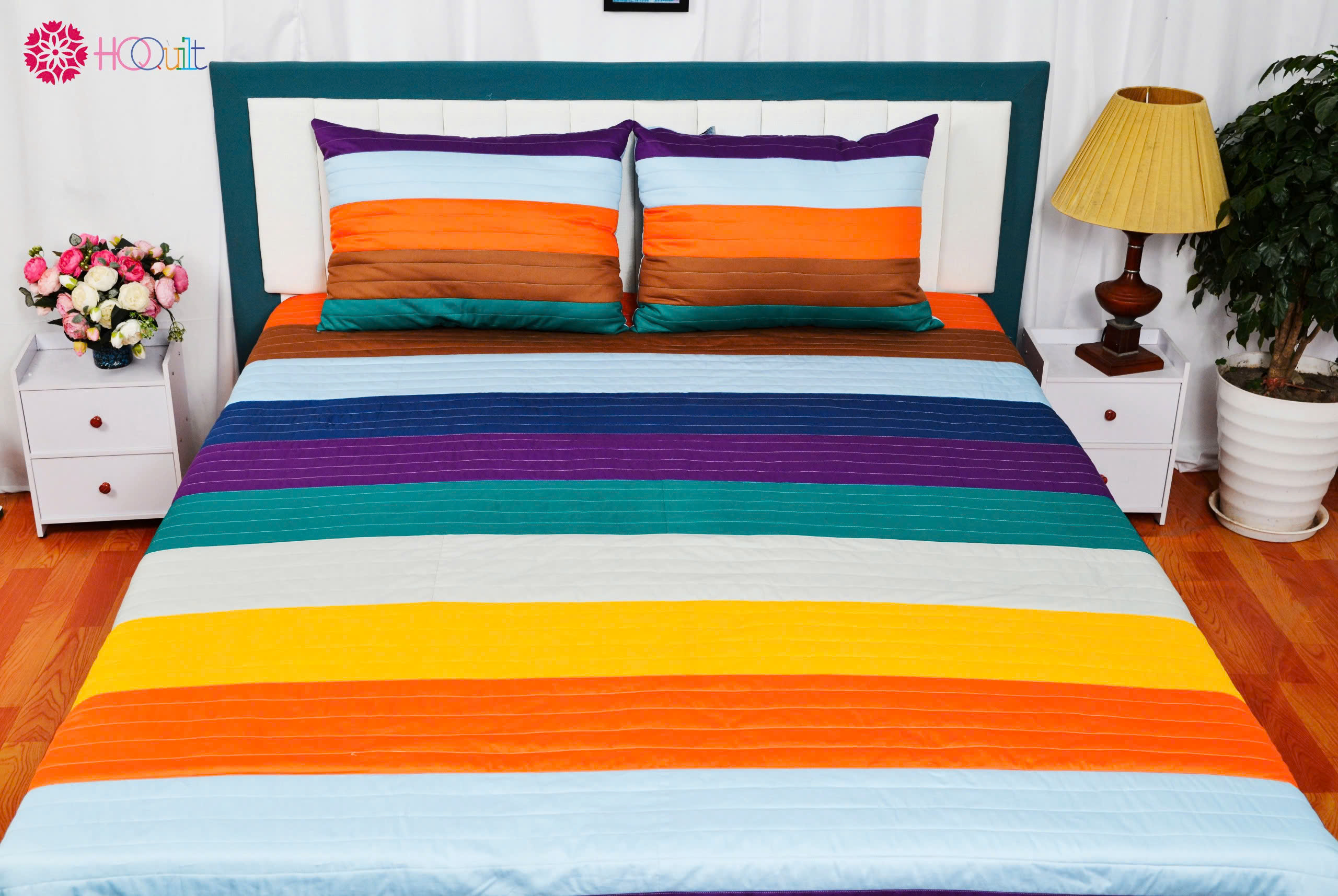 Chăn ghép dải là một trong những thiết kế quilting kinh điển, mang phong cách tối giản nhưng đầy nghệ thuật. Những dải vải được kết hợp hài hòa, tạo nên những mảng màu cuốn hút, vừa hiện đại vừa đậm chất thủ công. Mỗi đường may, mỗi lớp chần bông đều được chăm chút kỹ lưỡng để đảm bảo độ bền, tính thẩm mỹ và sự thoải mái tối đa.
