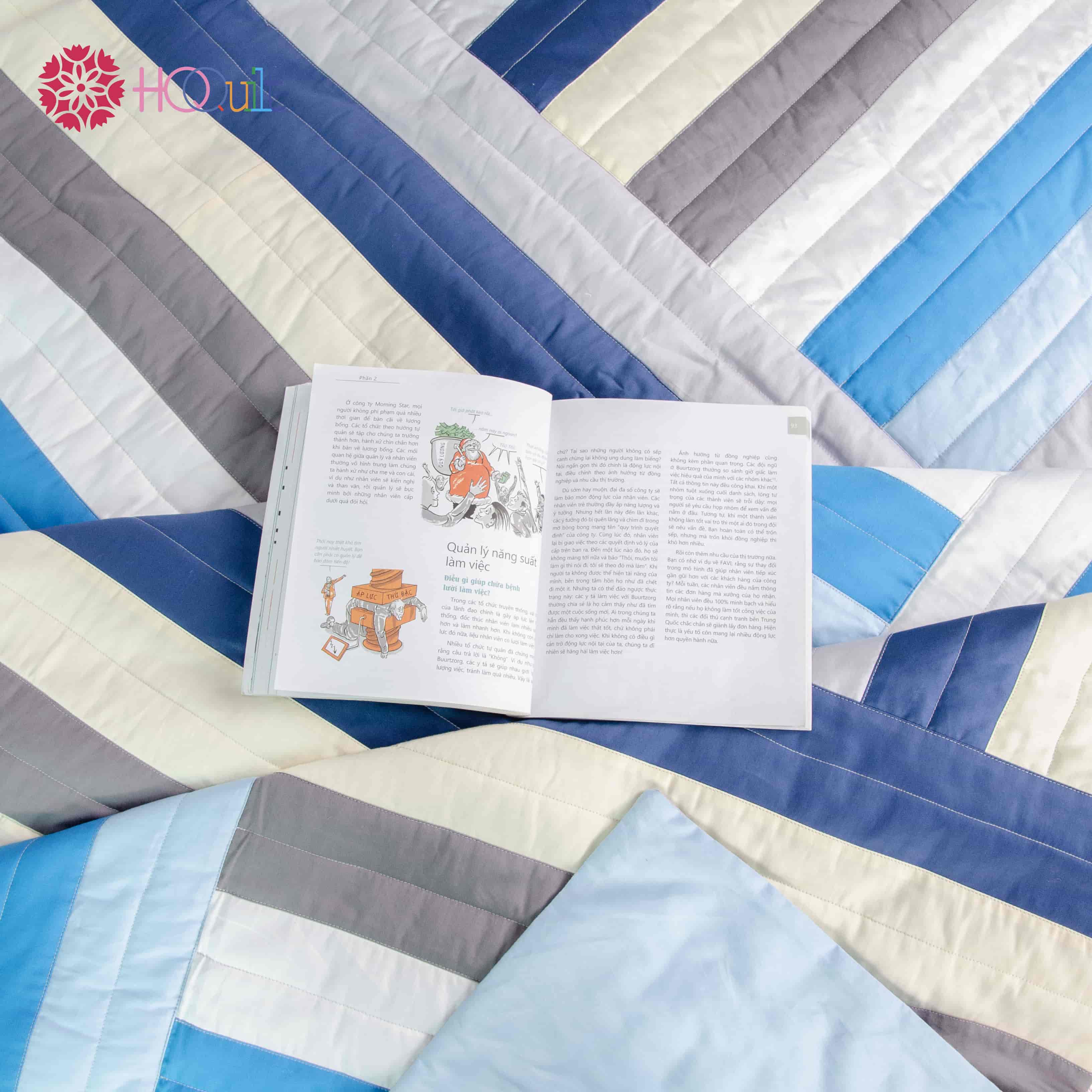 Mỗi dải vải trong chăn đều được cắt và ghép bằng tay bở bàn tay tài hoa của những người thợ HQQuilt. Sự kết hợp giữa văn hóa dân gian và phong cách hiện đại đem lại sản phẩm không chỉ là một chiếc chăn mà còn là một tác phẩm nghệ thuật.
