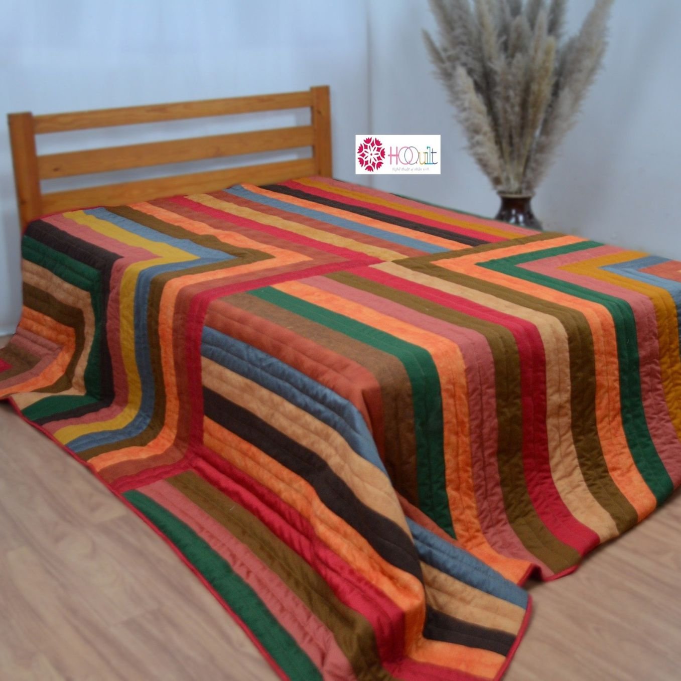 Chăn quilt dải Dòng thời gian được ghép từ nhiều dải vải lại với nhau theo kiểu xếp chồng. Các dải vải thường có màu sắc và họa tiết khác nhau, tạo nên một tổng thể đẹp mắt và ấn tượng.