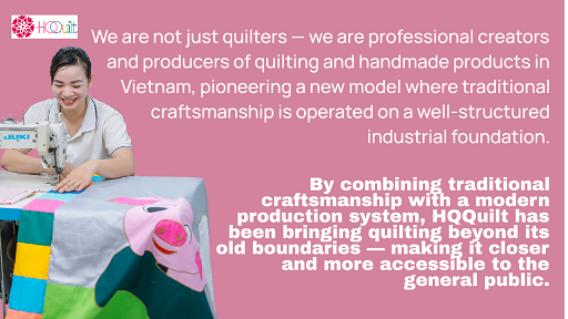 At Hong Quang Tran, we aim to bring the timeless artistry of quilting and handmade craft to everyday life, not just in Vietnam but around the world — combining tradition, creativity, and practicality in every product.