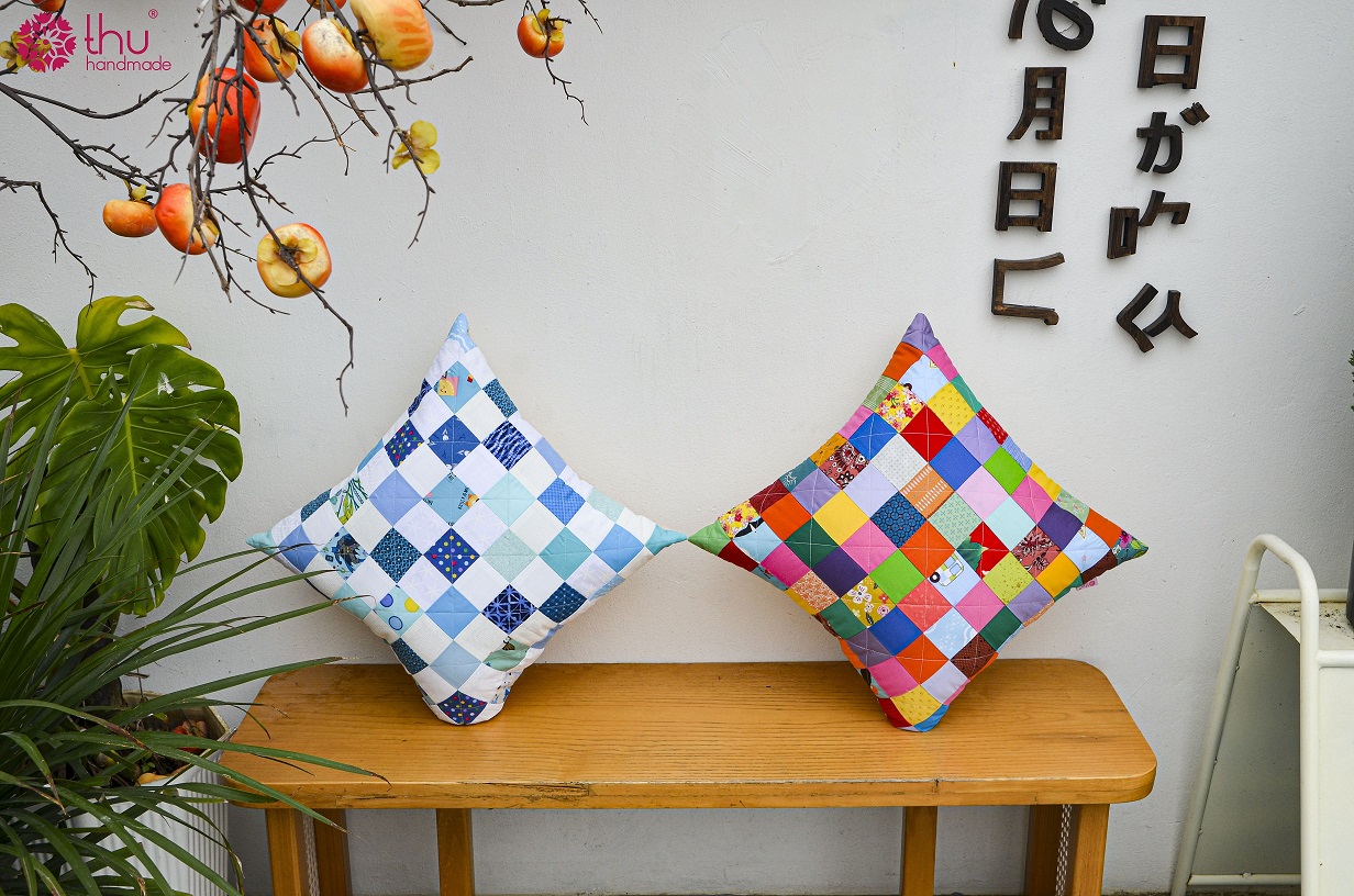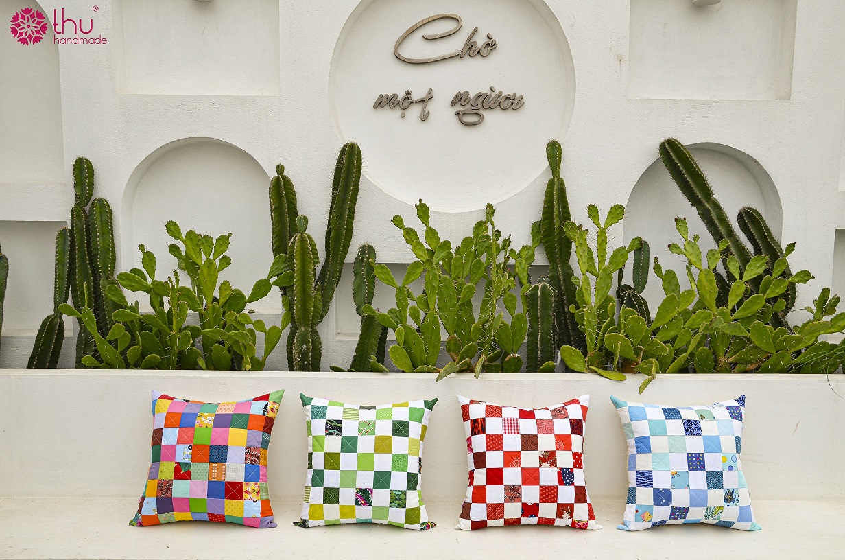 Gối ghép ô vuông "Sắc Màu Vui Nhộn" – Thương hiệu Thu Handmade