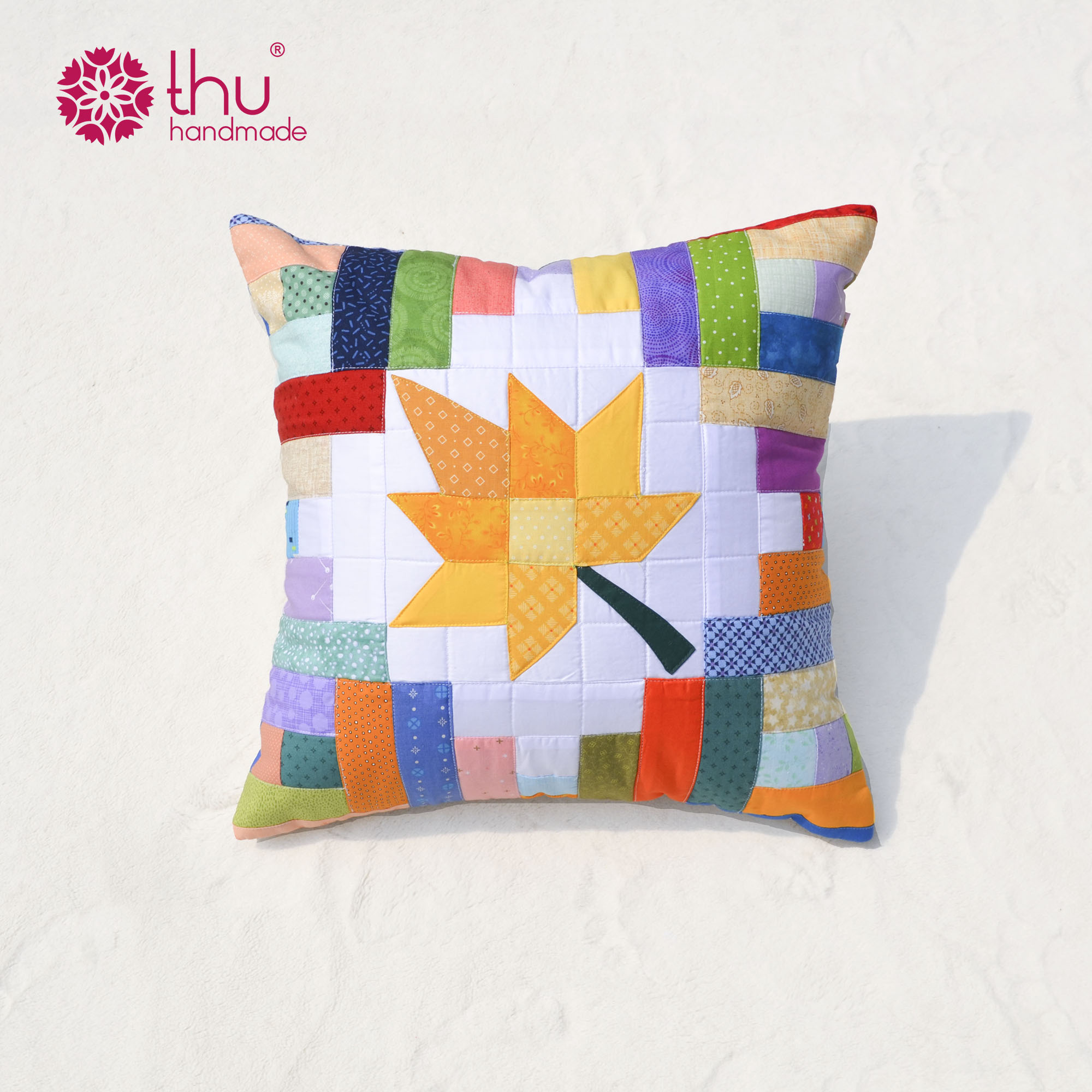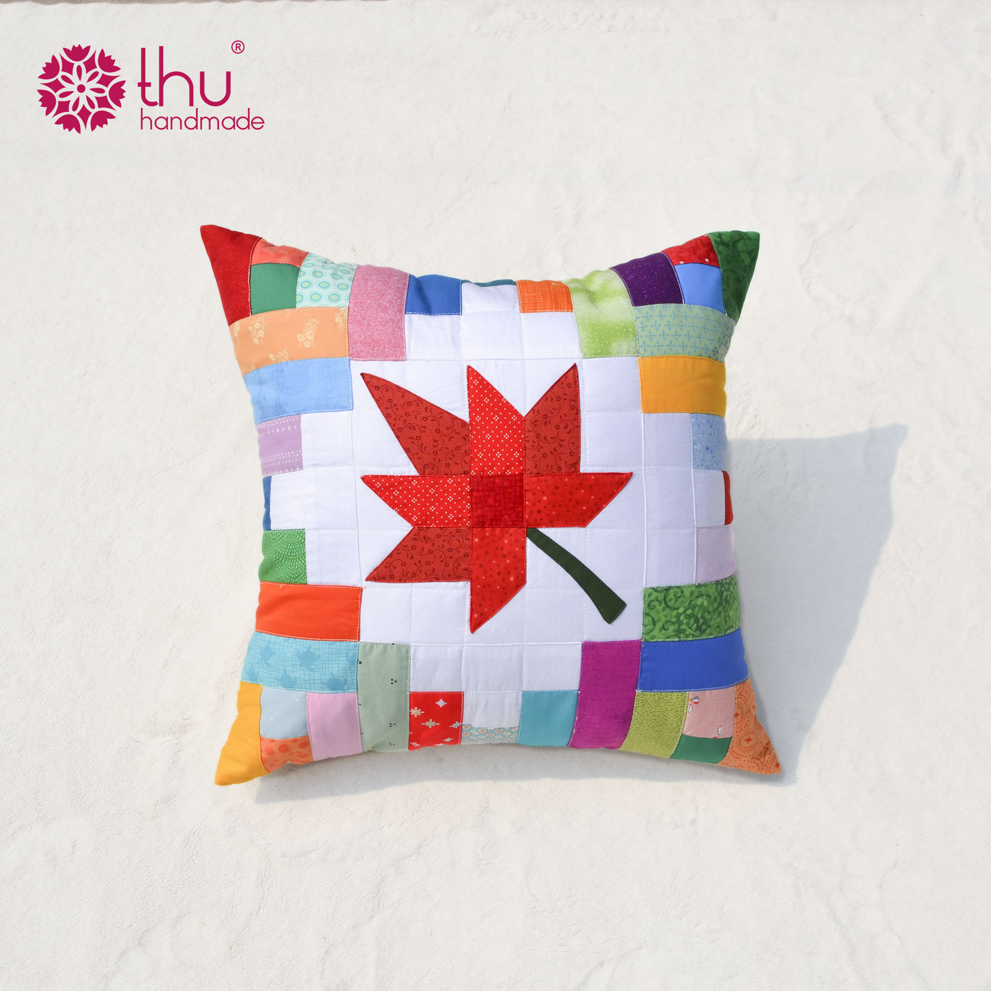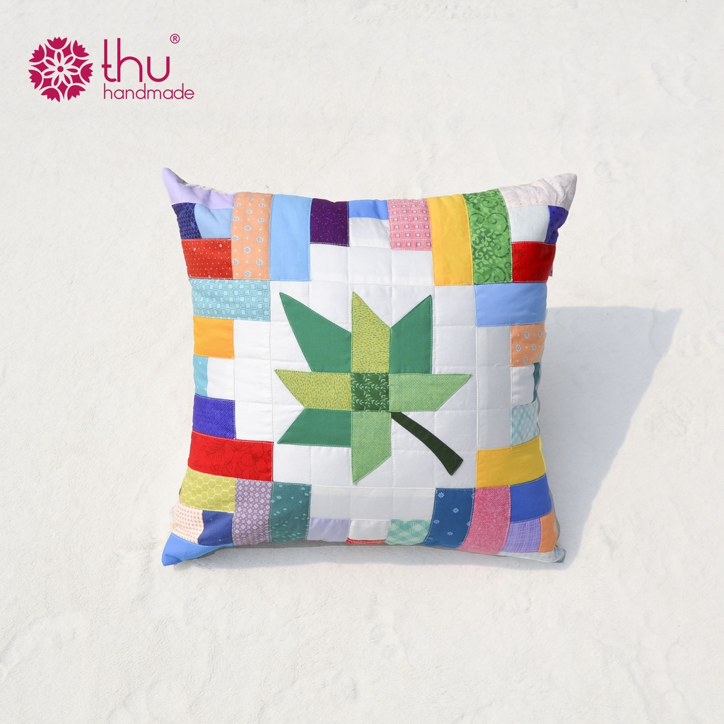 Thu Handmade giới thiệu mẫu gối vuông ghép kết hợp họa tiết lá phong, tone xanh lá, sản phẩm thủ công mang đậm hơi thở của thiên nhiên. Với họa tiết lá phong biểu tượng của mùa thay lá cùng sắc xanh lá dịu mát, chiếc gối là lựa chọn lý tưởng để làm đẹp không gian sống và mang lại cảm giác thư thái, dễ chịu.