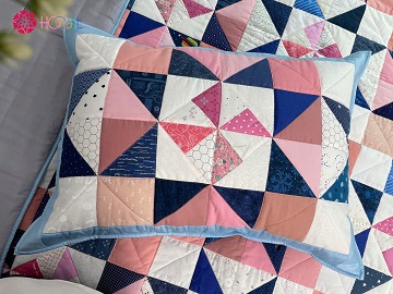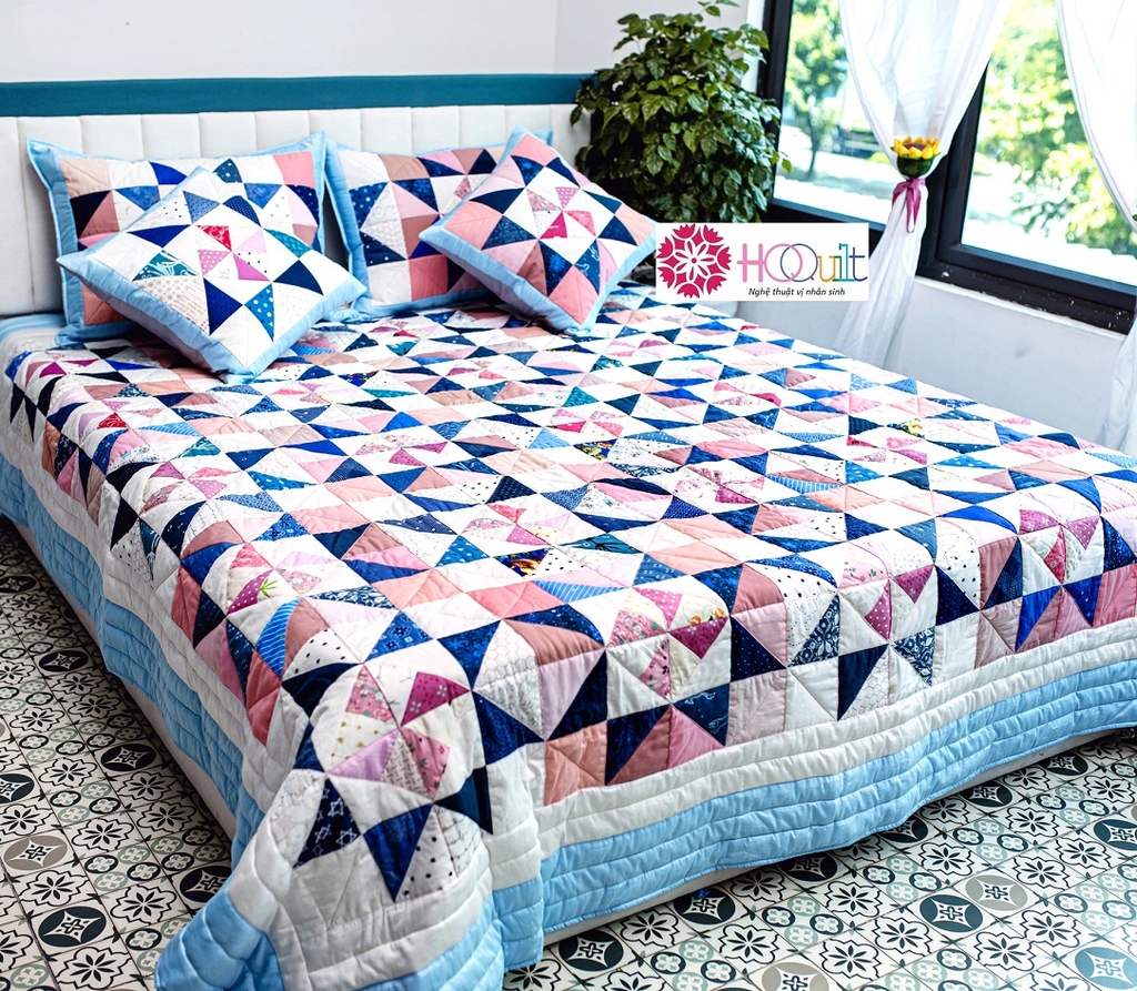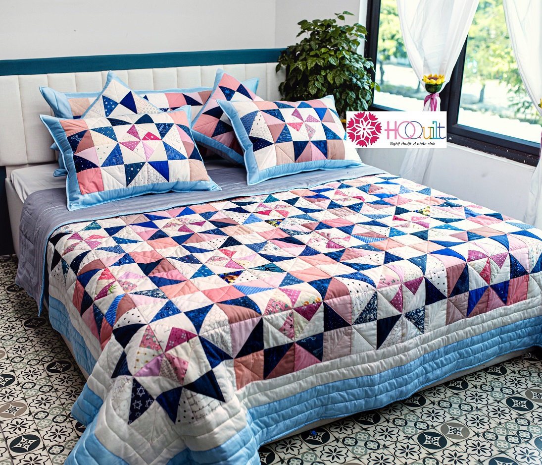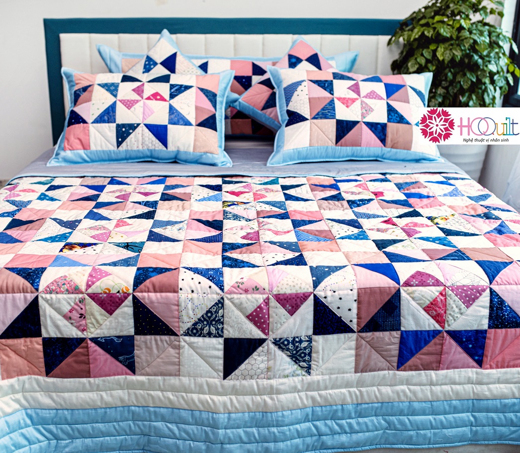 Bao quanh đó là viền chăn được tạo thành từ dải màu xanh dương được HQQuilt mô tả là khoảng trời trong sáng và đầy năng lượng tốt lành, hứa hẹn đón chờ chúng ta ở những Chương mới của cuộc đời viết tiếp…