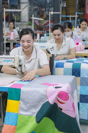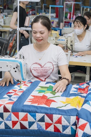 At a handcrafted quilting workshop in Phát Diệm, Kim Sơn, Ninh Bình—where hundreds of handmade products are created each month—artisans carefully piece together each fabric, blend colors, and quilt every stitch with skill and precision. “I think about the recipient’s emotions while making each product,” shared a lead artisan. “If I’m happy, I choose bright colors. If it’s rainy and my mood is subdued, I go for softer tones. Every quilt carries its own mood.”