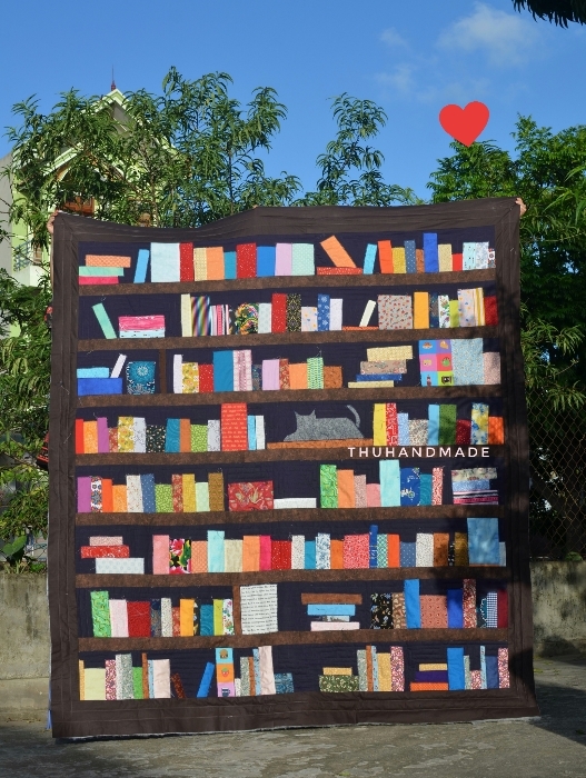 Nhà HQQuilt hân hạnh giới thiệu mẫu chăn quilt áp vải hình Giá sách, một tác phẩm nghệ thuật kỳ diệu mang đến không gian sống của bạn sự ấm áp và sang trọng.