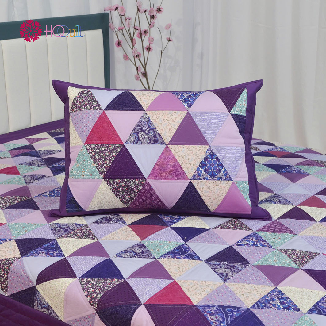 The triangle quilt is made up of many pieces of fabric with different colors and patterns, creating a unique and eye-catching whole. Each quilt is a separate work of art, expressing the creativity and personality of the maker.