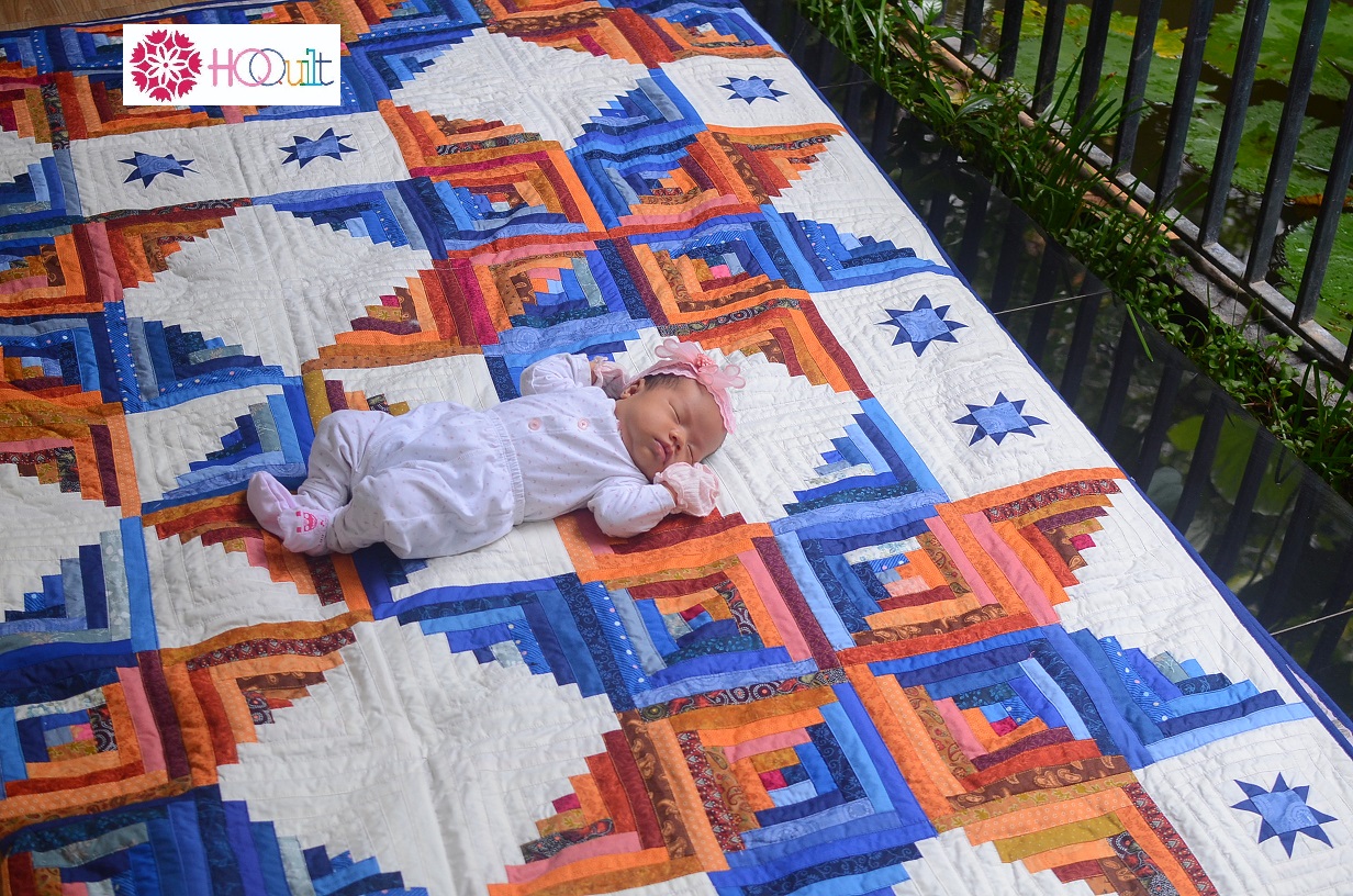 Màu sắc chăn quilt "Little Star" rất trong sáng nhờ phối hợp chỉ 2 tone chính: Cam và xanh cobal trên nền trắng cực kỳ tinh khiết.