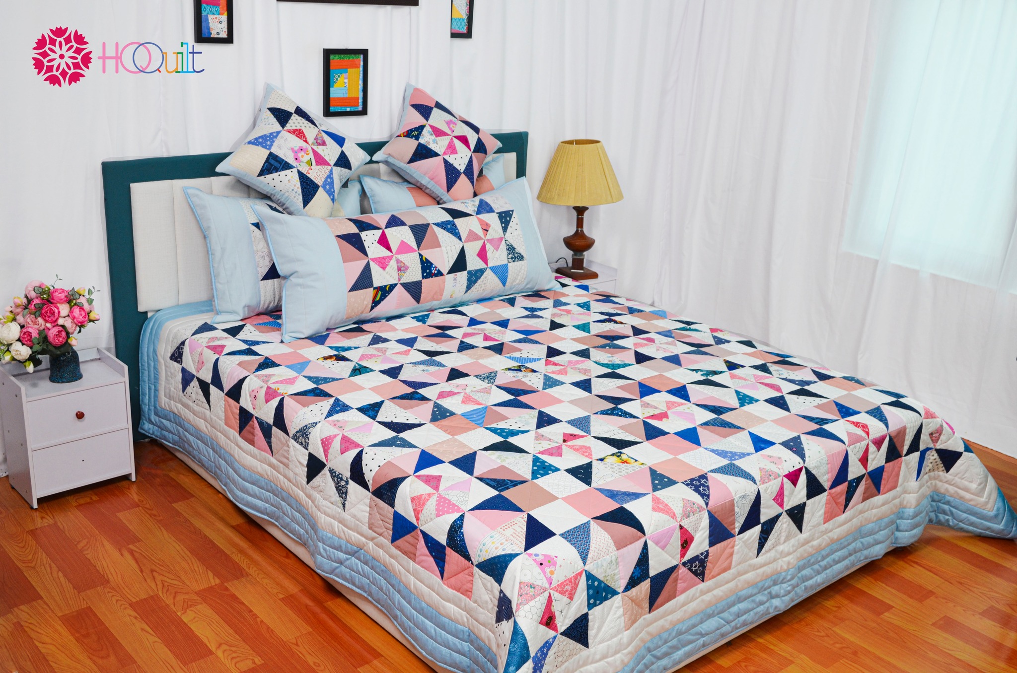 Bộ sản phẩm Eternal Happiness được ghép bằng 1470 miếng vải khác nhau và được chần bông kỹ càng đến từng đường ghép đã cho thấy; nghệ thuật quilting trong chăn Hạnh phúc vĩnh cửu thực sự rất cầu kỳ, tỉ mỉ và phức tạp. Và thông qua đó HQQuilt muốn;