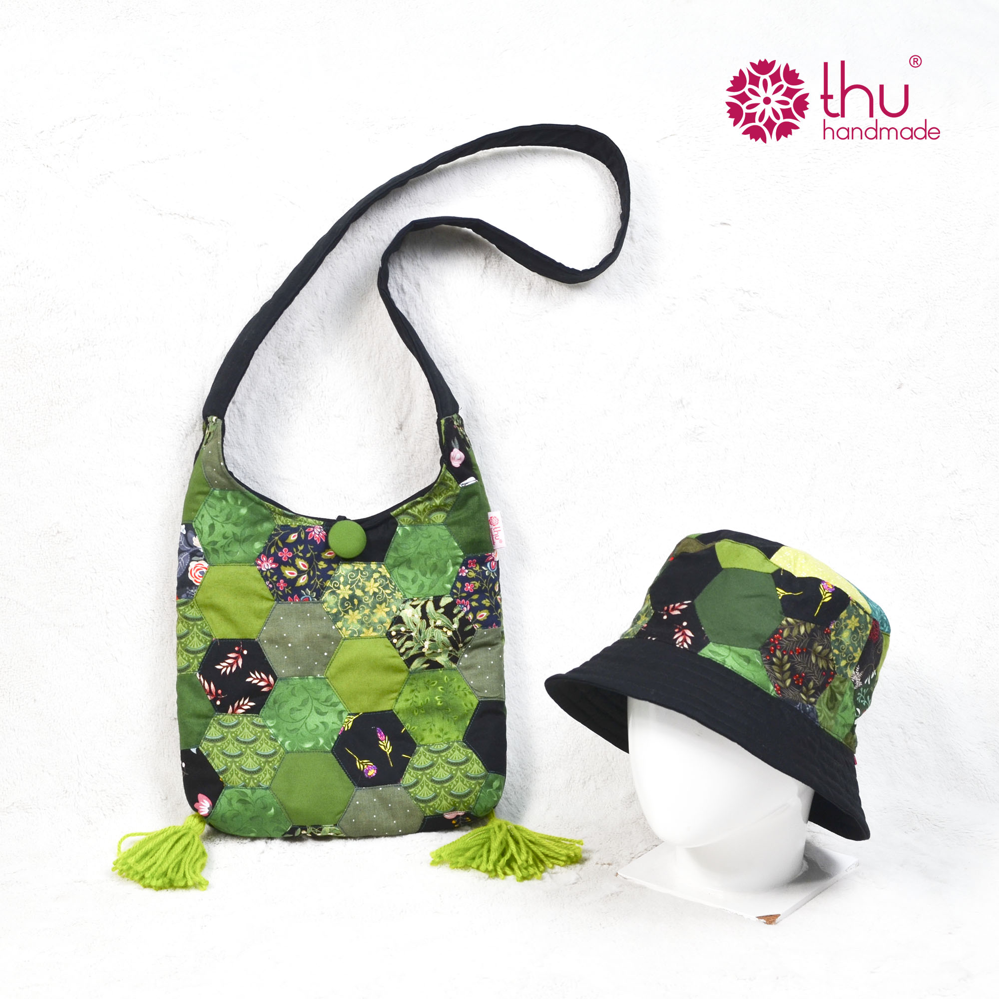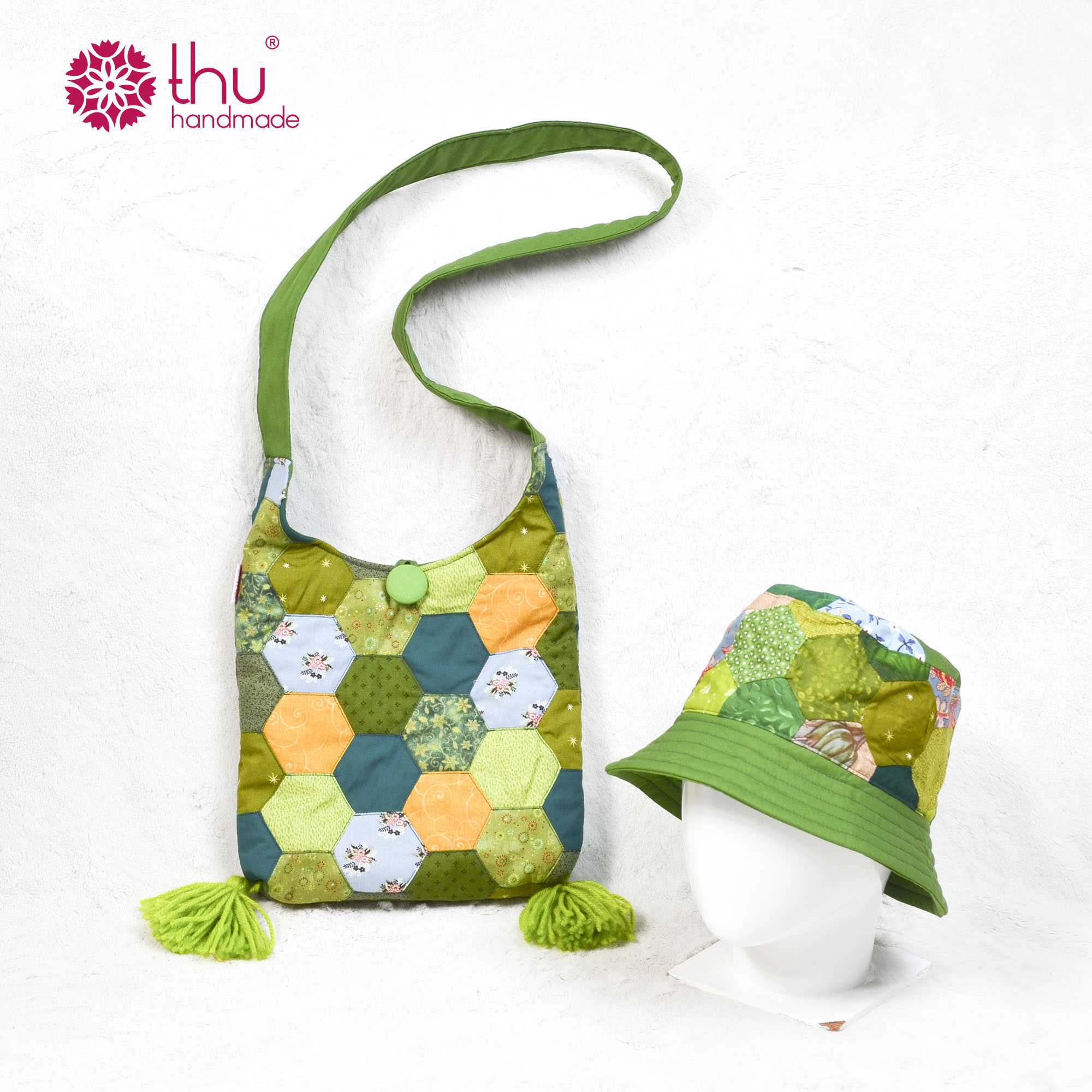 Được may từ vải thô 100% cotton với với lối ghép lục lăng được ghép thủ công bằng máy may rất cẩn thận và tỉ mỉ từng chi tiết. Với kiểu dáng túi đeo vai kết hợp với mũ pocket set túi mũ ghép lục giác nhà Thu Handmade sẽ là món phụ kiện tuyệt vời cho các nàng dạo phố, đi chơi, đi du lịch, ....