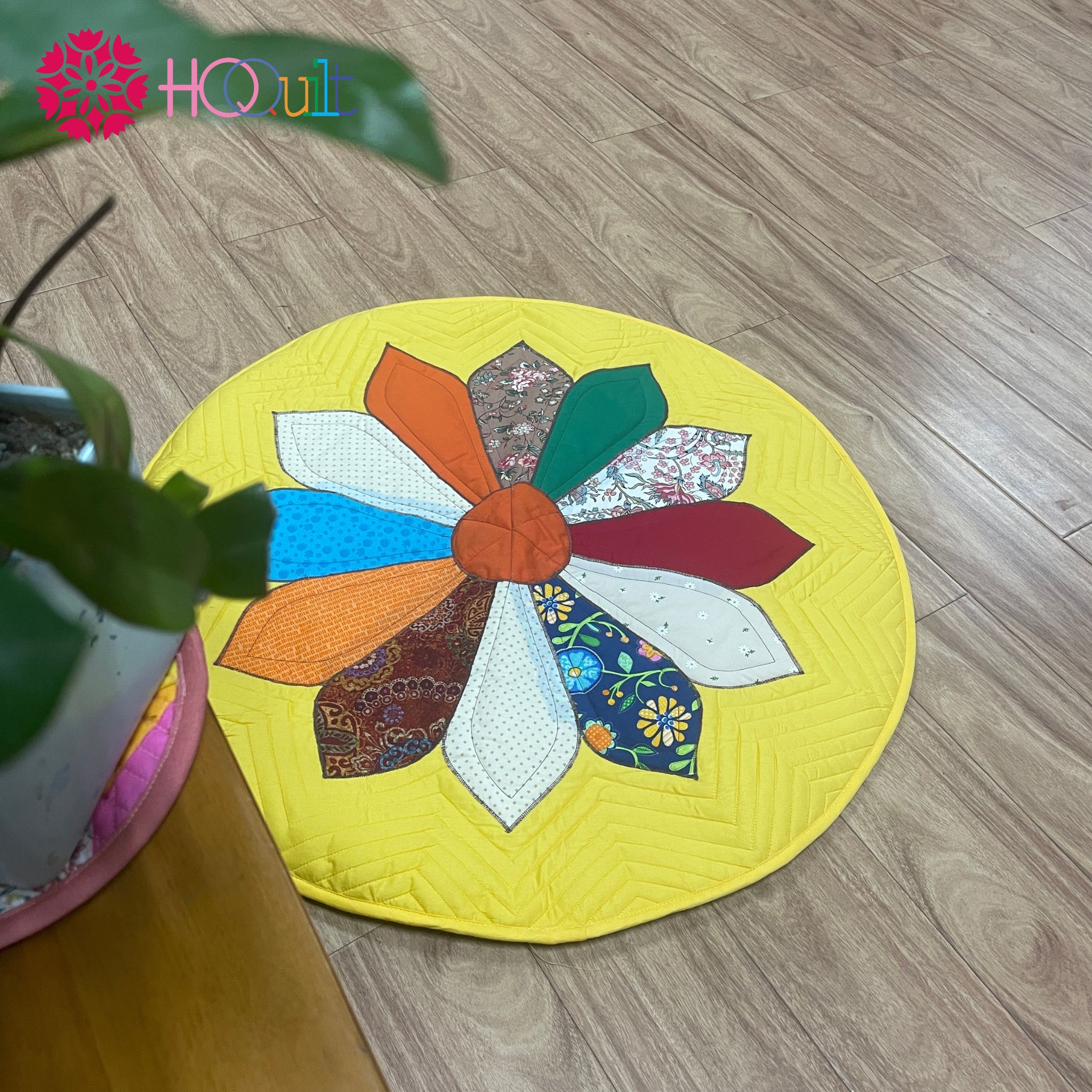 Được tạo nên từ kỹ thuật Quilt Áp Vải hình bông hoa cúc thanh khiết, chiếc thảm này không chỉ là một tác phẩm nghệ thuật Quilting, mà còn là một điểm nhấn đầy tinh tế cho không gian của bạn.