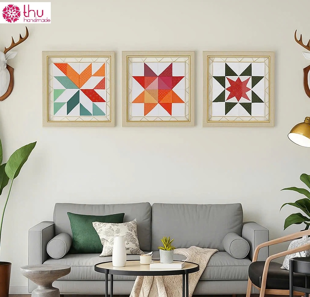 🌿 Tranh ghép vải quilting handmade – Món quà nghệ thuật từ vải vóc Việt Nam, nâng tầm không gian sống và cảm xúc.