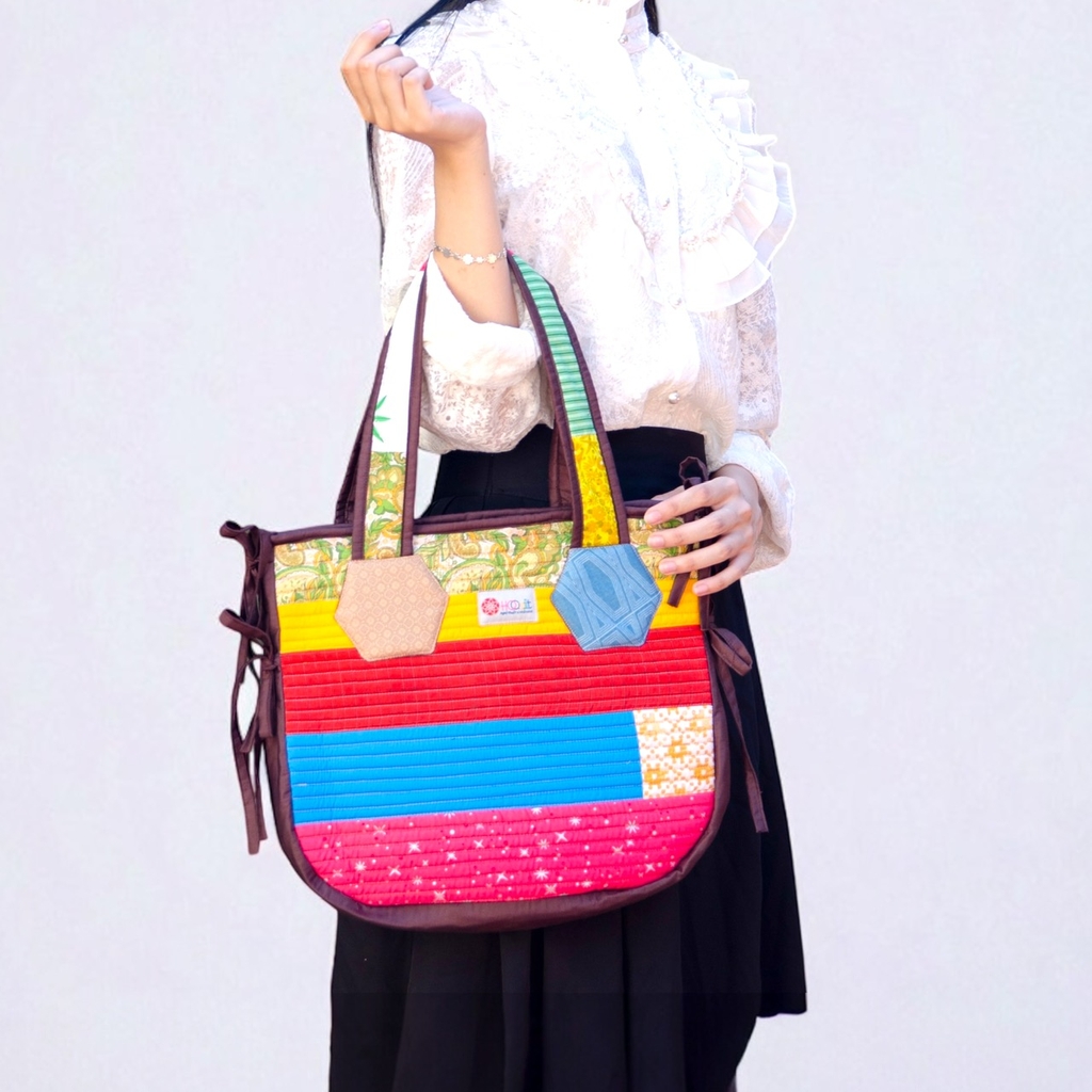 Vẫn giữ nguyên tinh thần ghép dải ngang ngẫu hứng: mỗi túi là một bản sắc riêng, mang dấu ấn nghệ thuật cá nhân.